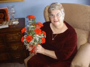 Grandma holding the heart vase with flowers from grandpa in 2002. Photo coutesy of: Donnella Corey